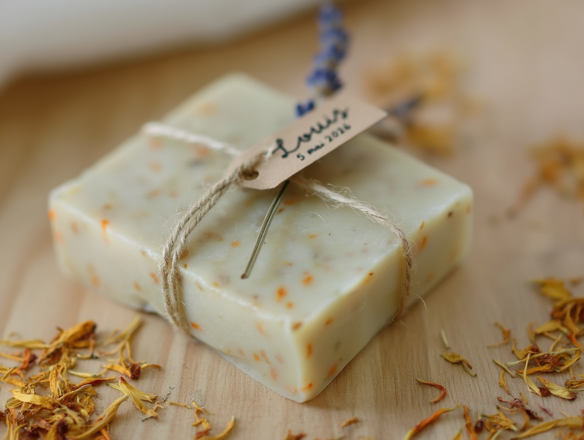 Offrez à vos invités un souvenir utile et délicat : un savon artisanal fabriqué spécialement pour votre événement.